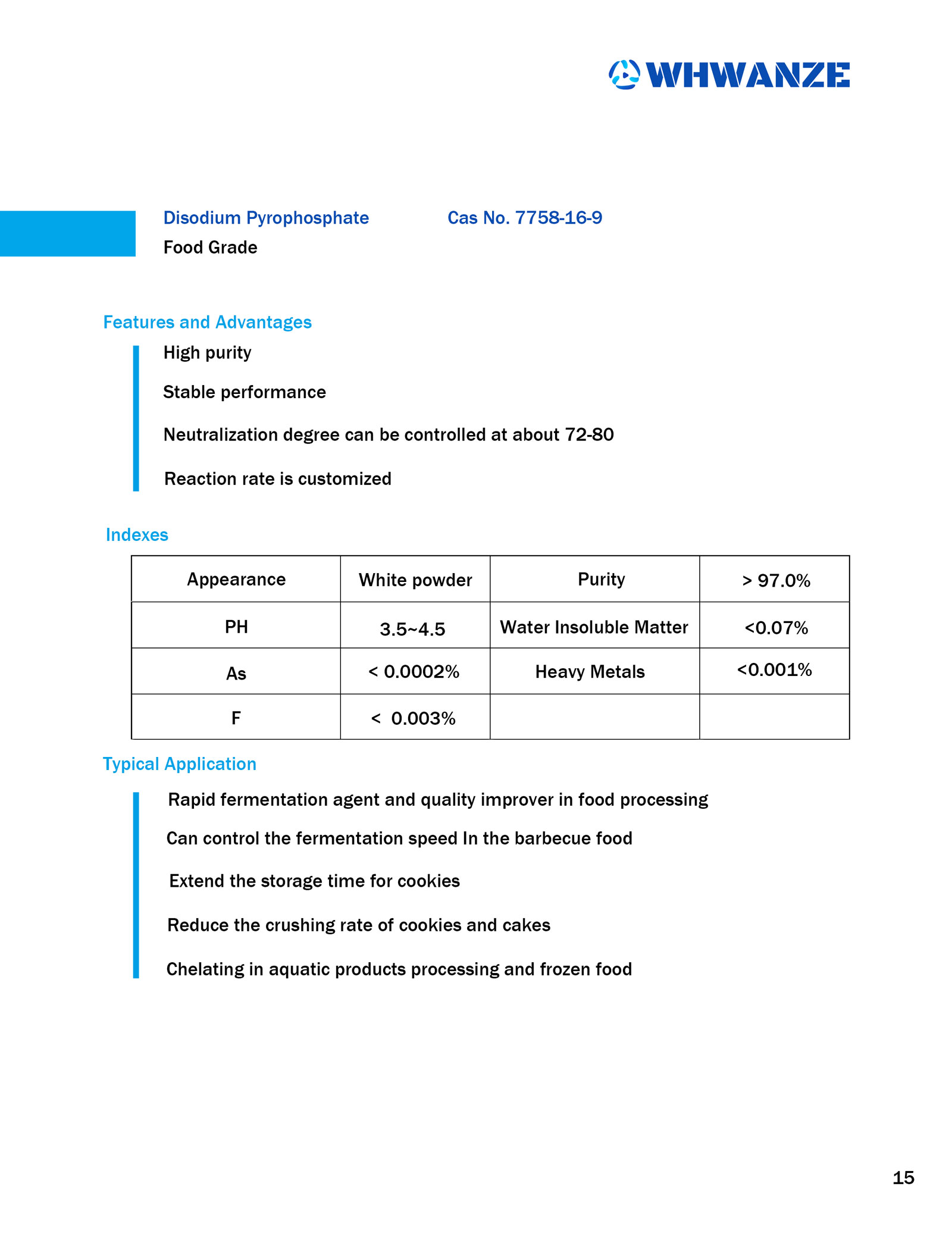 The other names: Disodium Pyrophosphate, disodium dihydrogen pyrophosphate, acid sodium pyrophosphate, sodium pyrophosphate dibasic