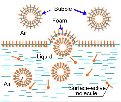 Foaming is a phenomenon in which air enters and is evenly distributed in a liquid during mixing and blending. Surface-active substances, such as proteins and fats, are usually needed to reduce the surface tension of the liquid, making it easier for air to enter the liquid and form bubbles.